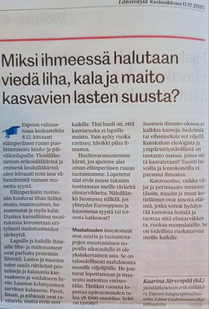 Terveelliseen ja monipuoliseen ruokavalioon liittyy paljon tekijöitä ja koen, että kouluissa ja päiväkodeissa ollaan viemässä asiaa vailtettavasti väärään suuntaan.